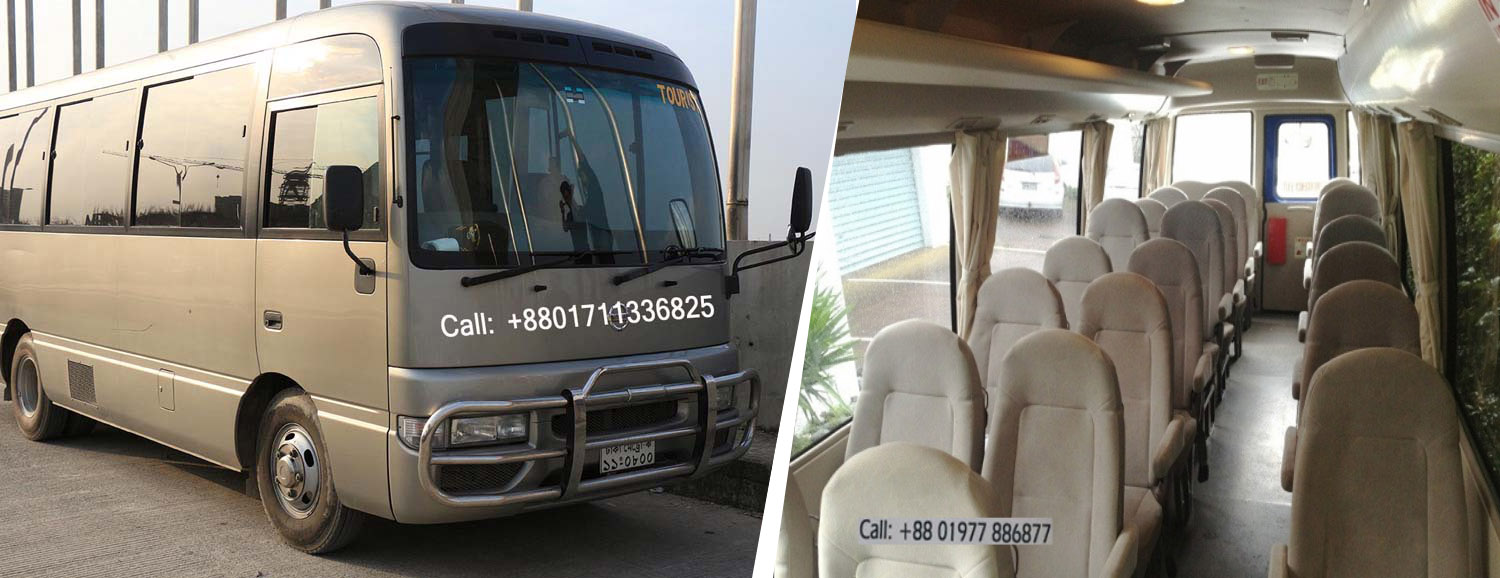 Second is Ac Normal bus such as Nissan Civilian, Toyota coaster, Mitsubishi Rosa. These types of bus is better and affordable than those of Luxurious AC bus. Seat capacity is 28 to 33 seated and rent will be 15,000 taka to 40,000 taka depends on distance and time.